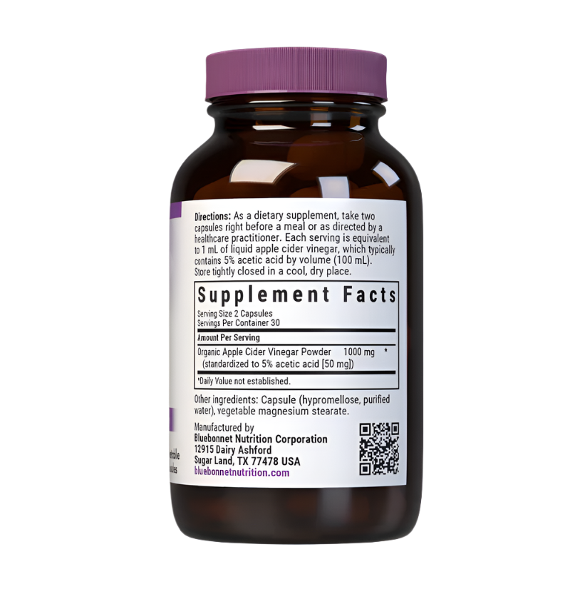 As a dietary supplement, take two capsules right before a meal or as directed by a healthcare practitioner. Each serving is equivalent to 1 ml of liquid apple cider vinegar, which typically contains 5% acetic acid by volume (100 ml).