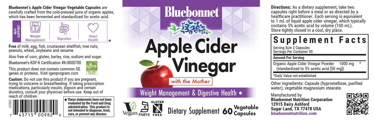 1000 mg of Organic Apple Cider Vinegar per serving along with the Mother
